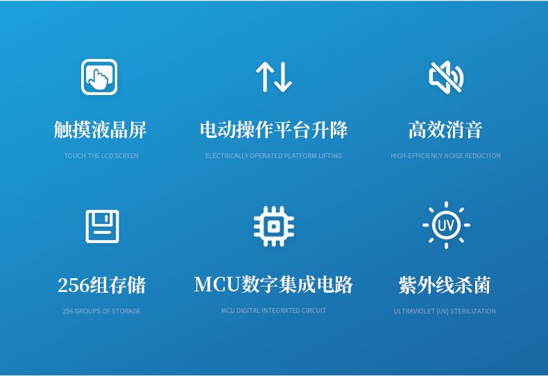 6.設備配置電動操作平臺升降、 LED 照明系統、紫外殺菌功能;