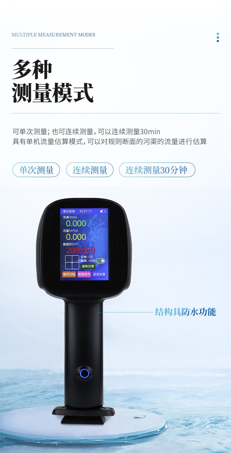 7.多種測量模式,可單次測量;也可連續測量,可以連續測量30min;具有單機流量估算模式,可以對規則斷面的河渠的流量進行估算;