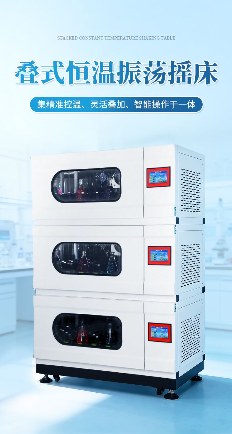組合疊加式搖床是專為面積窄小的實驗室而研制開發的一款具有多單元疊加和多溫度區控制的產品。