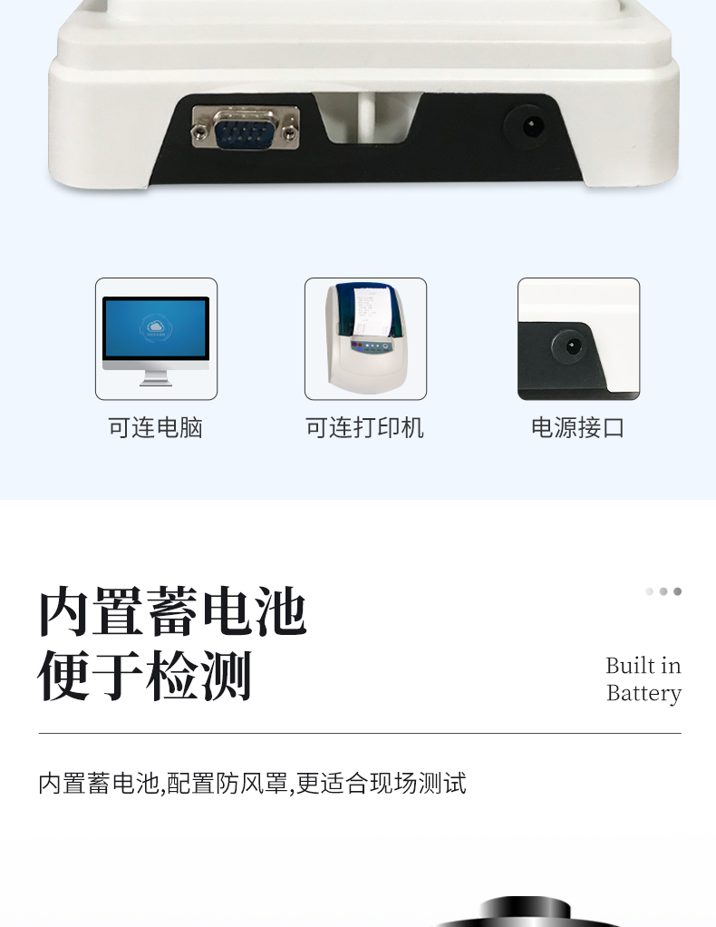 6.內置蓄電池,配置防風罩,更適合現場測試