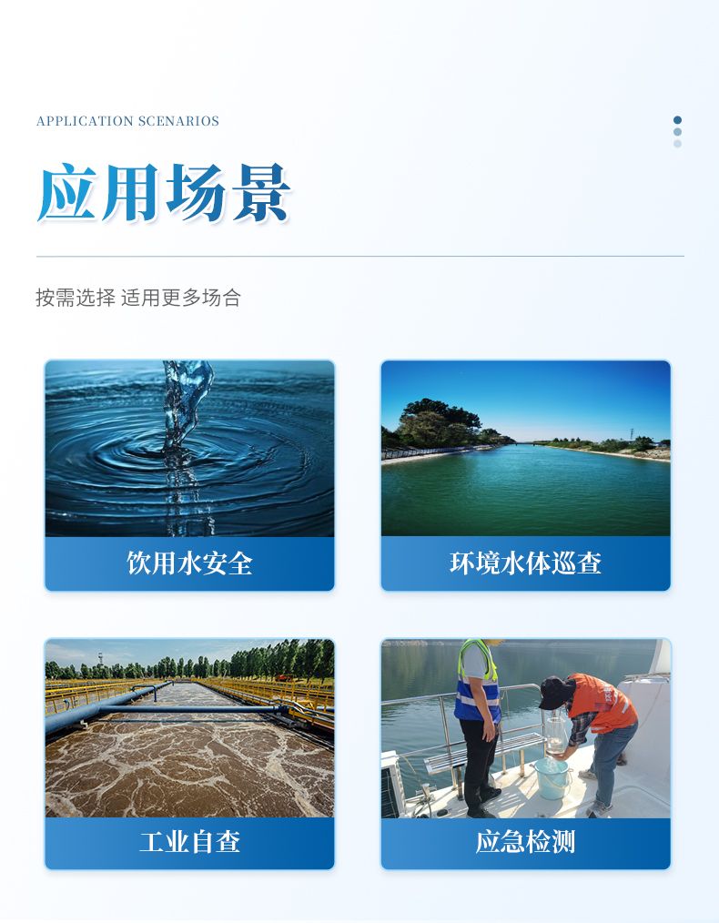 儀器將復(fù)雜的實(shí)驗(yàn)室分析流程集成機(jī)身中,操作簡捷,其性能符合國家標(biāo)準(zhǔn)方法要求,適用于飲用水安全篩查、環(huán)境水體巡查、工業(yè)廢水排放監(jiān)控及應(yīng)急檢測等多種場景,是保障用水安全、實(shí)現(xiàn)高效現(xiàn)場管控的得力工具。