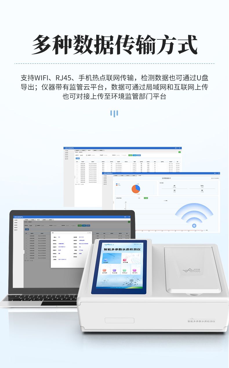 8.儀器帶有監管云平臺,數據可通過局域網和互聯網上傳,亦可對接上傳至環境監管部門平臺。